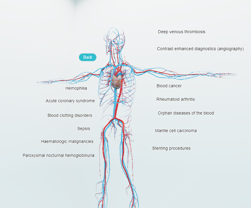 This customer wanted a salestool that could visualise the many expertise domains they were active in. I created this human body and organised the different organs in separate groups you could navigate through. This is hosted on their site, but can be transported offline on a tablet as well for trade fairs.